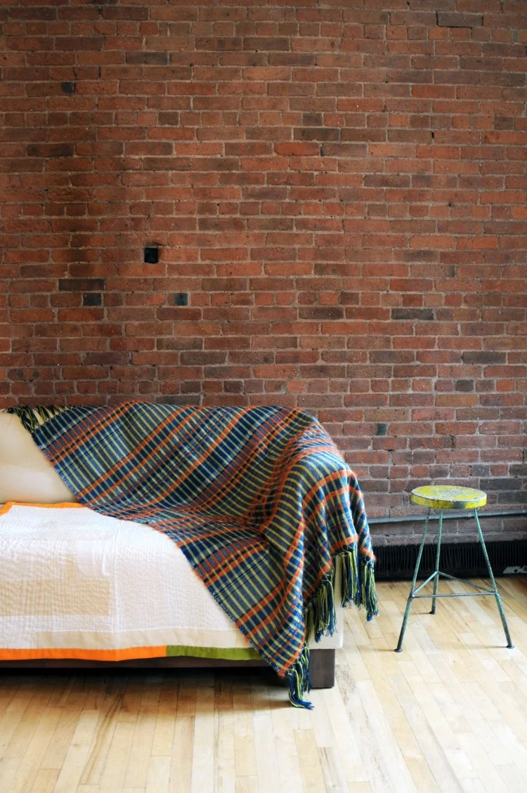 Hand-woven blankets and pillows fabricated for Thompson Street Studio launch collection in 2015, RUN HOME.